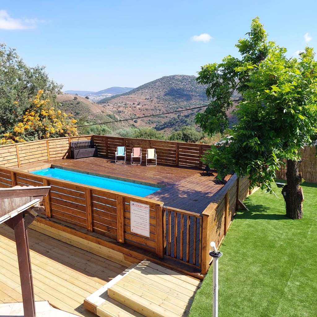 4 מפלסים, 18 חדרים סגורים, חצר ענקית עם נוף להרי הגליל, בריכה, ערסלים, פינות ישיבה, נדנדות, גריל ושולחנות משחק. אפשרות לארוחות בתוספת תשלום